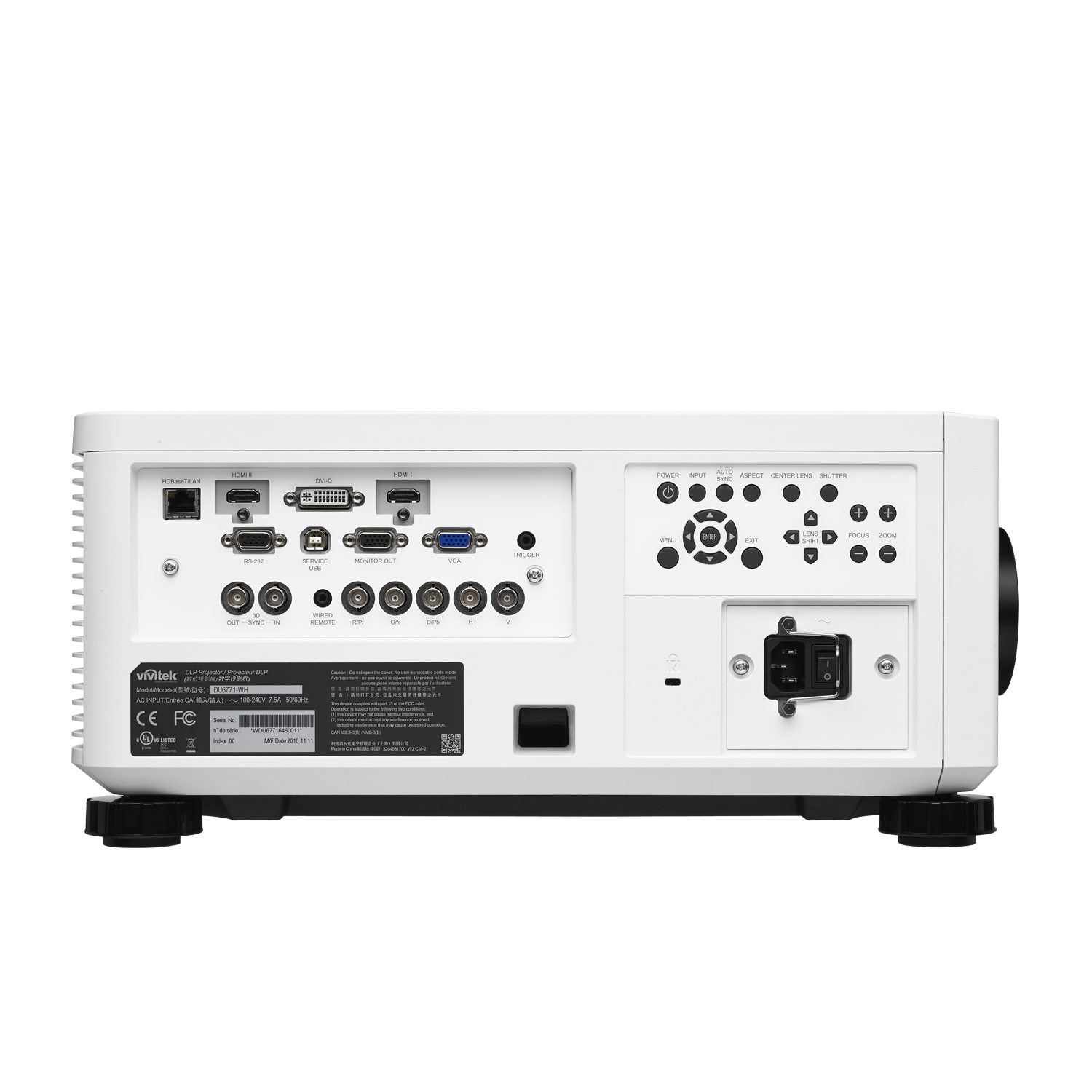 | I/O Connection Ports | HDMI v1.4 (x2), DVI-D, VGA-In, Component (5 BNC) (RGBHV), 3D-Sync In, 3D-Sync Out, Monitor Out, 12V Trigger, RS-232, USB (Service), Remote Jack (Wired Remote), RJ45/ HDBaseT™ (Shared Port) |